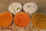 Homemade mango chutney, tamarind sauce, green mint chutney and deep red hot sauce provide accompanying accents to the breads and main entrees. Cool, yogurty raita smooths out the too-hot spots and adds milky flavors. The simple rice pilaf, accented by cardamom seeds and peas, is a delightful base.