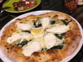 Worth the two-hour wait: Tony’s Pizza Napoletana. We enjoyed the Detroit-style Motorhead square pizza cooked in a steel pan (in the background) and the Artichoke Joe Classic Italian style (foreground.) Top it off with a splash or two of owner Tony Gemignani’s house-made Hot Pepper Olive Oil. (Photo By Lisa Paredes)