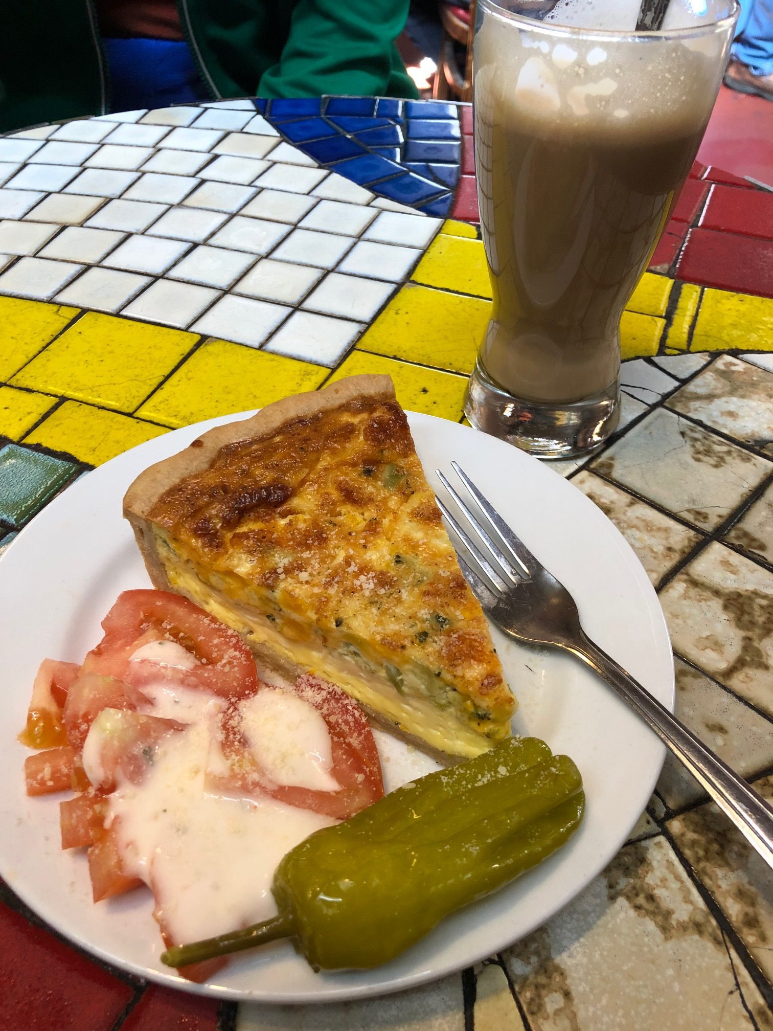 Breakfast of homemade quiche and an iced latte made from house-roasted espresso beans is a great way to start the day at Caffe Trieste. (Photo By Lisa Paredes)