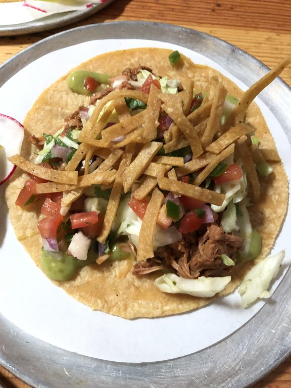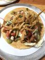The Baja fish taco is excellent, served with a pineapple and cabbage salsa. We also really liked the spicy shrimp taco, the steak asada taco, the chicken tikka masala taco, the jackfruit taco and the mushroom asada taco.