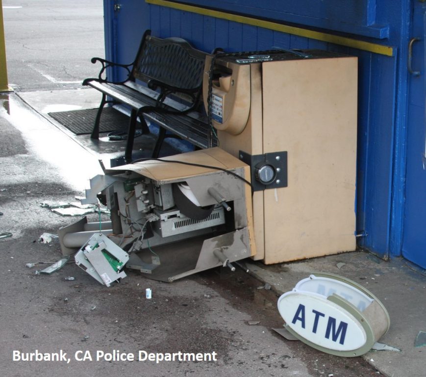 On April 8, 2017, at about 4:20 AM, Burbank Police responded to the Magnolia Car Wash, located in the 900 block of West Magnolia Blvd., regarding a loud noise and possible explosion. When Police Officers arrived, they found a stand-alone automated teller machine (ATM) located outside of the cashier’s office with significant damage. A closer inspection of the ATM suggested that some type of explosive was used in an attempt to steal money from the machine. Burbank Police Detectives responded to the scene along with investigators from the Los Angeles County Sheriff’s Department Arson/Explosives Detail.