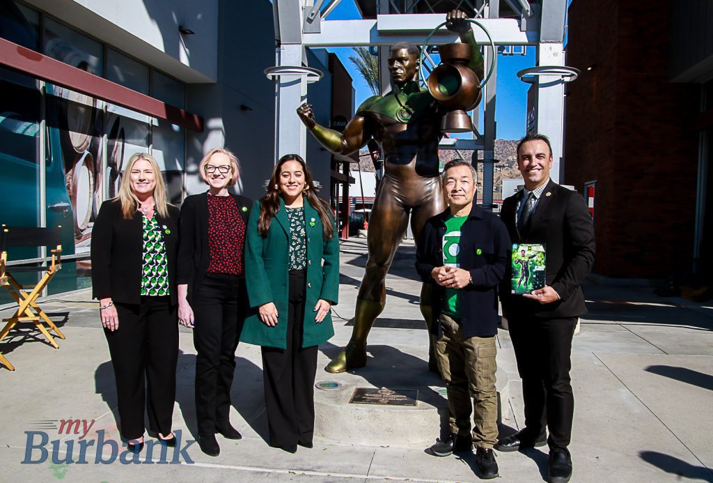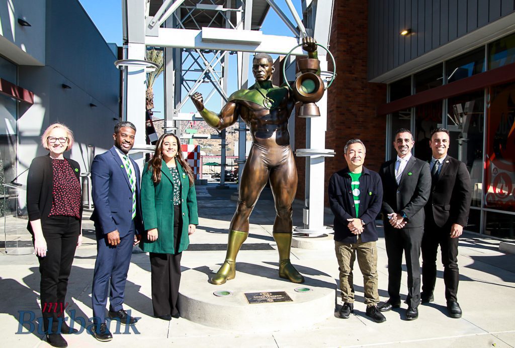 A monumental addition to Burbank’s growing collection of superhero landmarks was unveiled Thursday as Visit Burbank, in collaboration with DC and Warner Bros. Discovery, introduced a seven-and-a-half-foot tall, 600-pound bronze statue of Green Lantern John Stewart. The statue, located under Hangar 28 at the Burbank Empire Center, now joins Batman and Wonder Woman in representing iconic DC characters in the City.