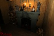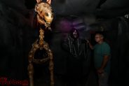 Pointing to a hooded life-size skeleton, he recounted its history, saying, “It started off as a pumpkin, and it’s been a clown, a werewolf, an alien… This year, it’s the Grim Reaper.”