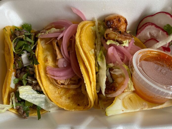 The tacos we tried – asada, chicken tinga and grilled shrimp – were excellent. Miracle Bakery’s asada is prepared in the traditional Mexican style. The accompanying red salsa provided a nice fire with just a few drops added per bite. They also offer barbacoa (shredded beef) and al pastor tacos.