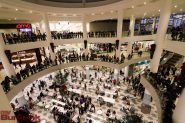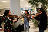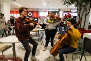 Shoppers stopped in their tracks to listen to the young carolers and musicians fill the three levels of the Town Center mall atrium with popular holiday songs.