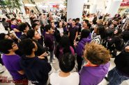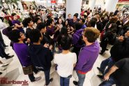 About 150 vocal and instrumental music students from Burbank and John Burroughs High Schools caused a buzz at the Burbank Town Center with a holiday music flash mob on Wednesday afternoon, December 19.