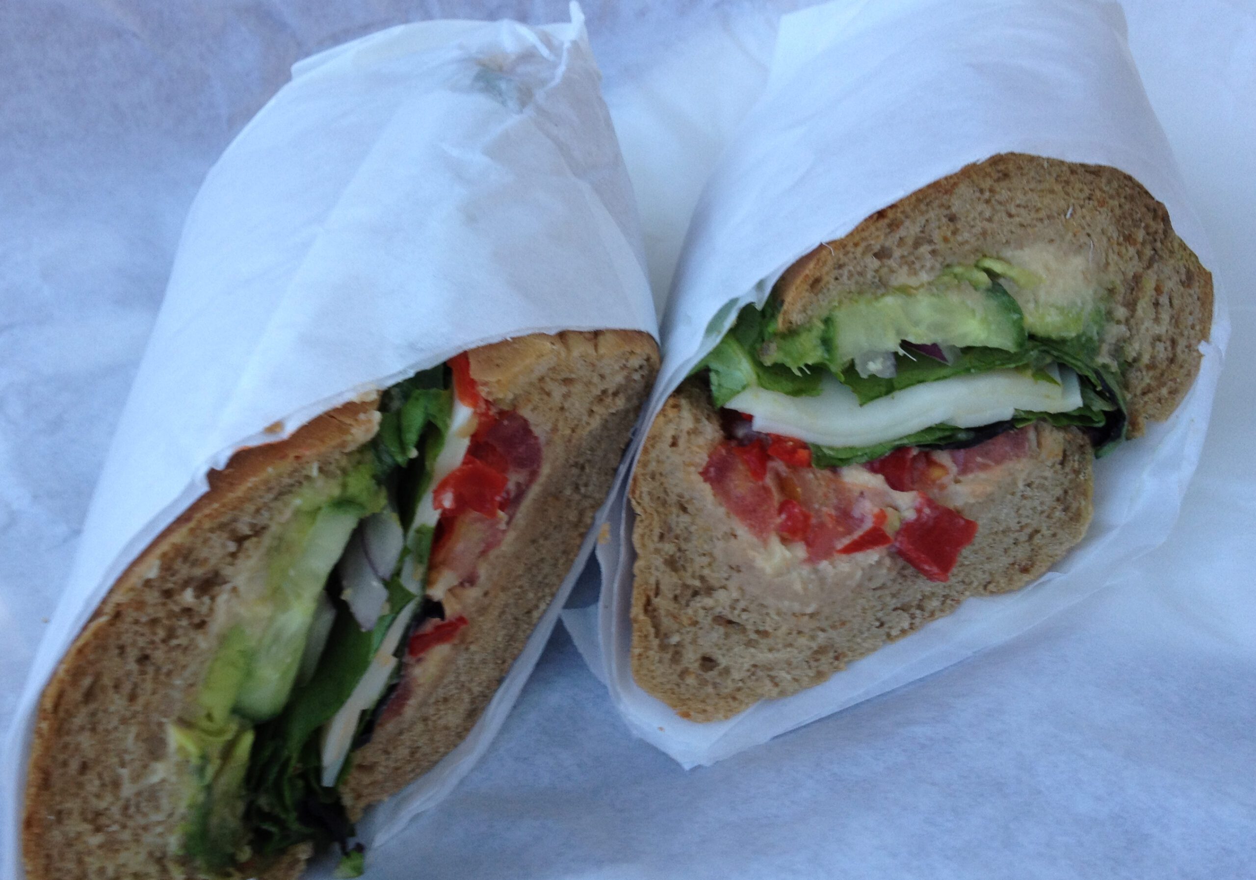 Wrapped in clean white paper, the sandwiches are a festival of colors and tastes. We have enjoyed a majority of the cafe’s menu selections including the Roasted Red Pepper Chicken, Turkey Pesto, the divine Grilled 3 Cheese Bacon Avocado, Club Sandwich, Turkey Havarti Melt and Southwest Pepper Jack Chicken.