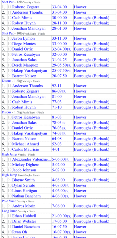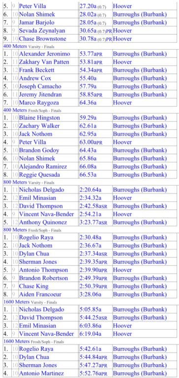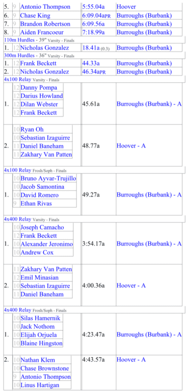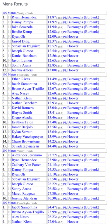 Home Sections Sports Hoover vs. Burroughs Track Meet Results
