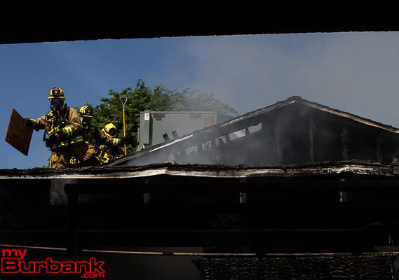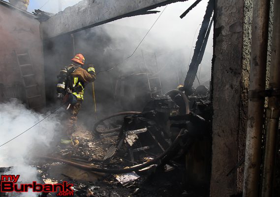 On Friday afternoon, Burbank Fire Fire Fighters along with fire companies from nearby Glendale Fire Department responded to a reported garage fire at 368 W. Spazier Avenue between Chavez and S. Victory.