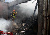 The fire completely consumed the rear detached garage and quickly began to extend to the home.