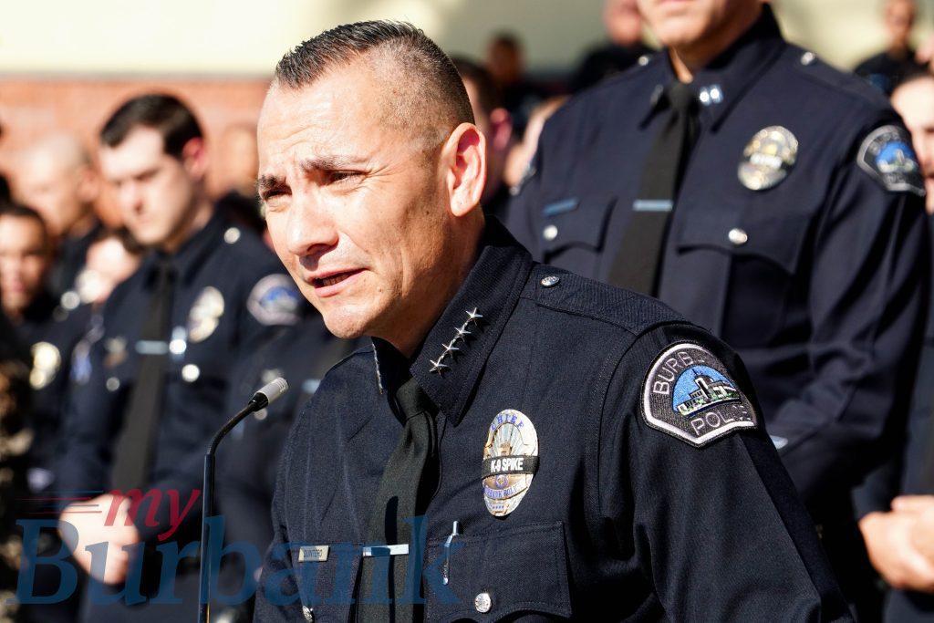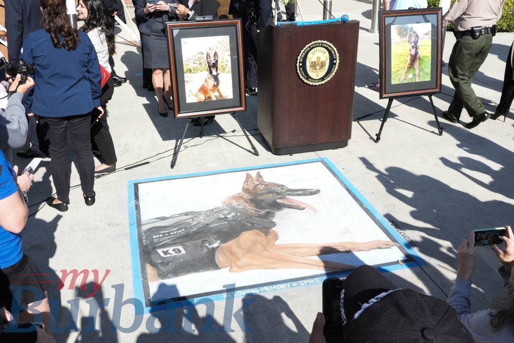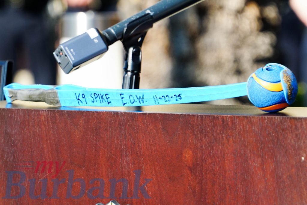 Burbank Police Chief Rafael Quintero then spoke on behalf of Officer Salas. “Spike was so much more than just the dog, a tool or even a partner. He was an irreplaceable part of our family. He slept inside every night in his cozy bed, and was surrounded in love every single day,” said Chief Quintero. “His passing has left an unimaginable void in our hearts that can never truly be filled when you think of Spike, please remember him as the hero that he is. He was brave, courageous, protective and bursting with energy. His spirit was fierce, and he brought joy and loyalty into our lives through the weight of our loss, though the weight of our loss is heavy, his heroism will echo through our memories and the lives he touched far beyond the day he left us.”