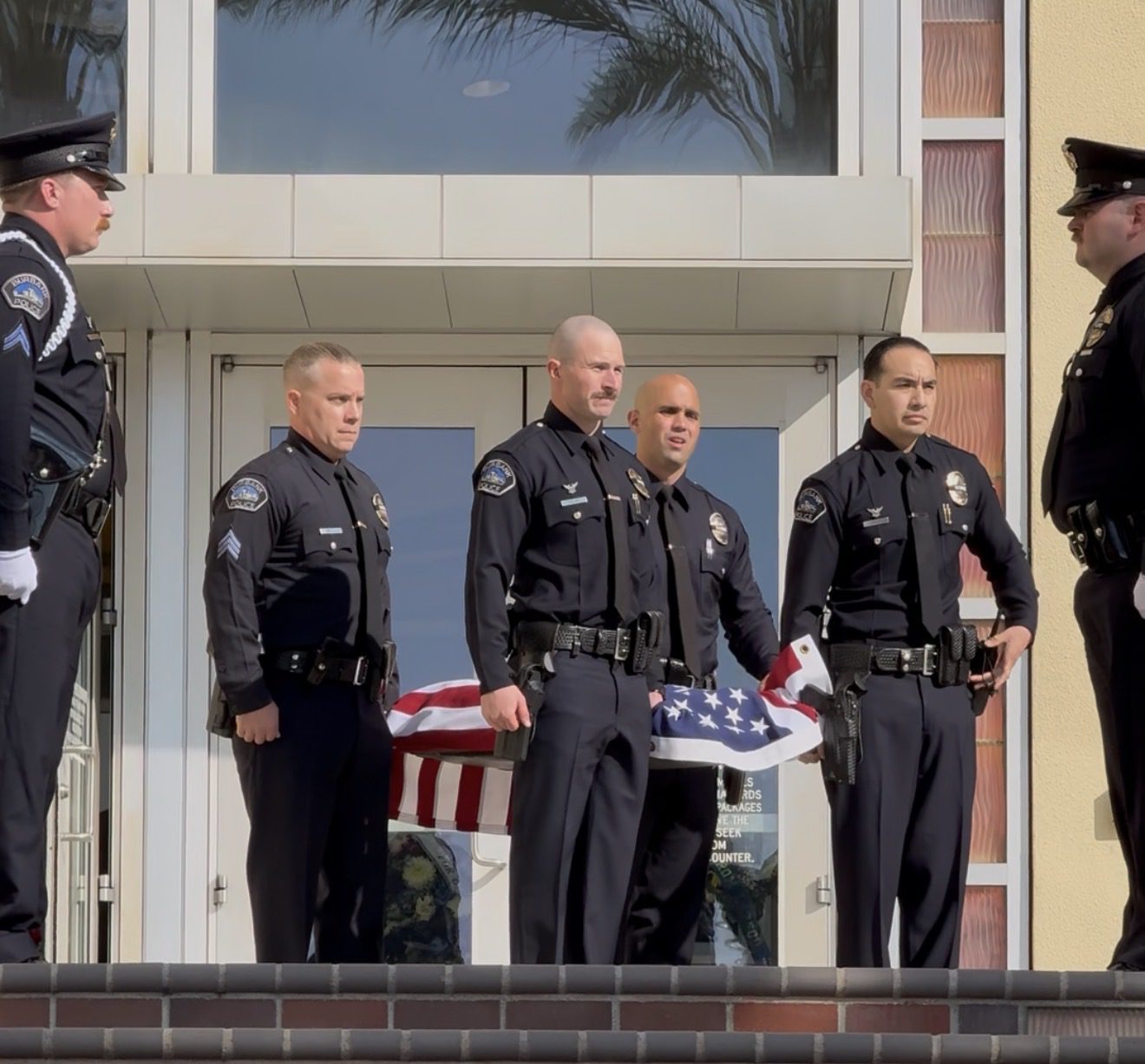 After Spike was carried inside, Officer Salas joined his wife and young children in the front row, surrounded by close friends, family, and fellow officers Mayor Nikki Perez addressed the crowd with words that captured the collective sorrow and gratitude felt throughout Burbank. “Today, I stand in solidarity with the entire Burbank community of neighbors and families who have spent the last week in mourning,” said Mayor Perez. “And of course, no one has felt this more deeply than the men and women of our Burbank Police Department.”