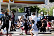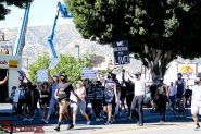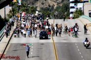They marched on to Burbank City Hall where they gathered and had a couple of speakers make statements the gathering went to their knee and then departed heading off to The Burbank Police Station where again they stopped a couple of speakers addressed the crowd again went to a knee and then headed by to the Empire Center. The Burbank Police made sure the roads remained safe for the marchers to make it back to the Empire Center safely.