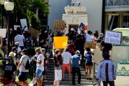 Protestors gathered in the Empire Center Tuesday afternoon at times dancing and chanting, with many of the common sayings, Black Live Matter, I can’t breathe and others. The protest departed the Empire Center and proceeded south on Victory Blvd with about 150 to 200 protestors. The Burbank Police blocked lanes and the intersections for the protestors to march.