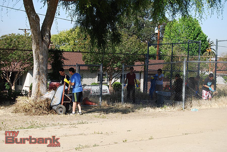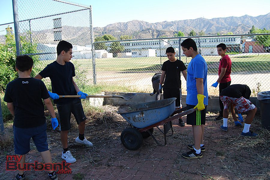 Student volunteers clean up the Student Garden area at John Muir Middle School.(Photo By Lisa Paredes)