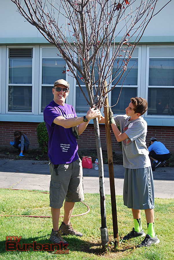 More than 120 students, parents, volunteers and staff turned out for John Muir Service Day during the morning hours of Saturday, April 18. The grounds of the large campus were weeded and trimmed and new plants and trees were placed in the ground.