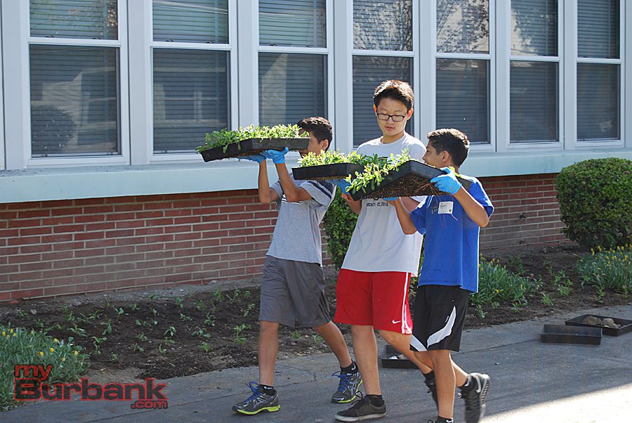The volunteers and staff planted 70 flats of groundcover between the 100 and 300 halls and 10 rose bushes in the front of the school and near the teachers’ cafeteria. They also planted 16 additional ornamental bushes to create a hedge for the new outdoor classroom and two Chinese Elm trees on the school’s Lower Field.