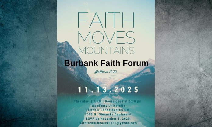 Five local religious leaders will come together Thursday evening for the “Faith Moves Mountains: Burbank Faith Forum,” a free interfaith panel discussion open to everyone and aimed at bridging connections between the city’s diverse faith communities.