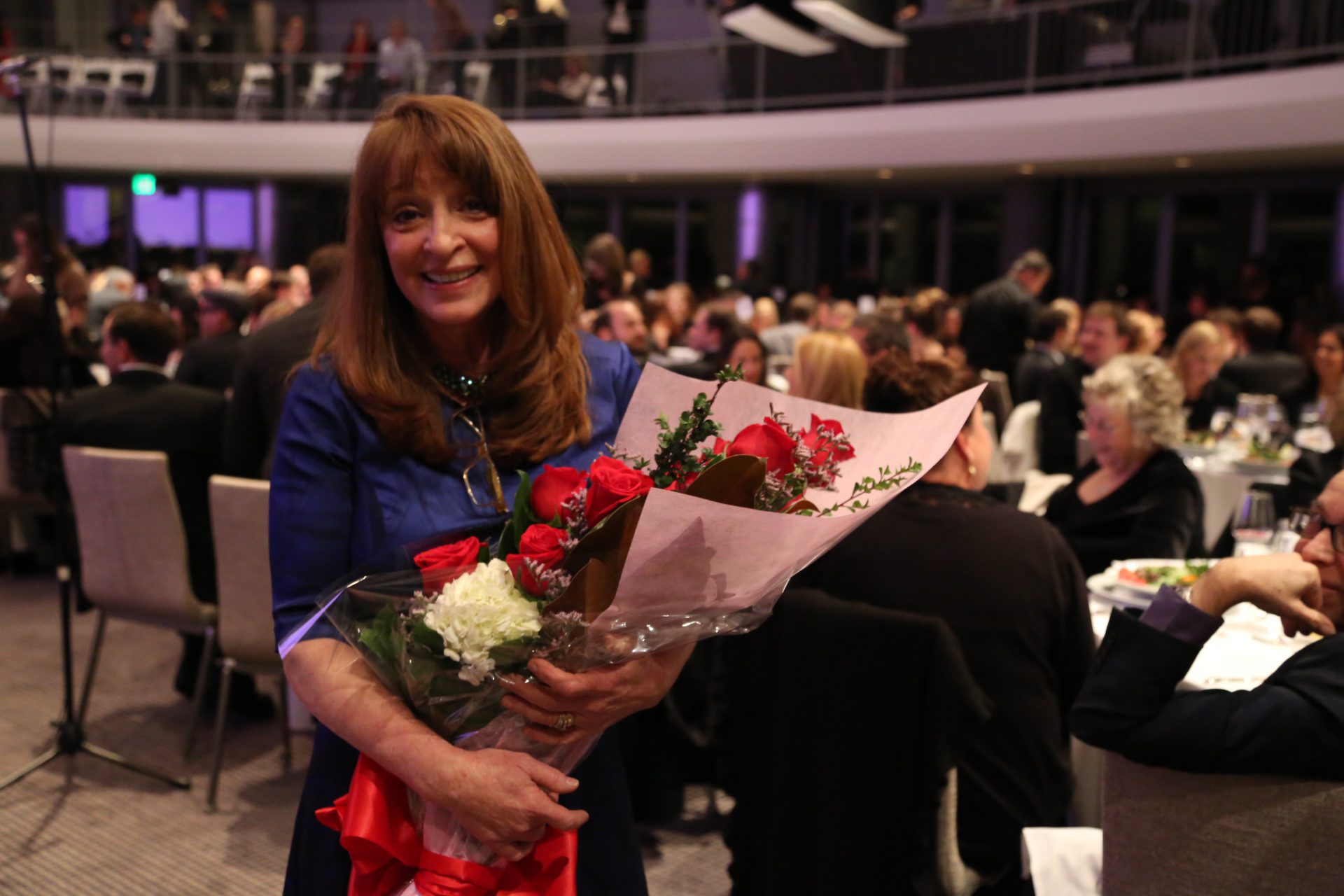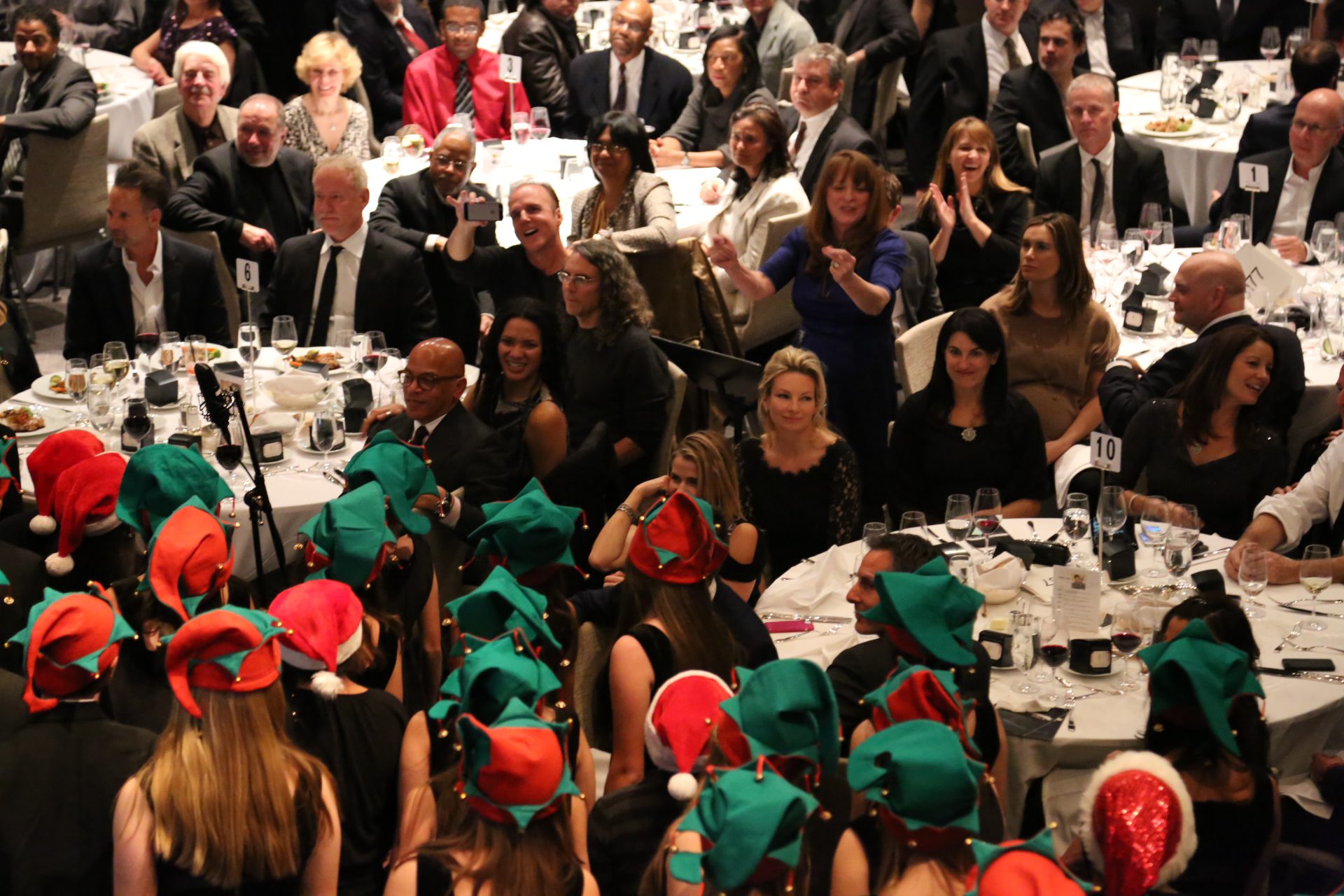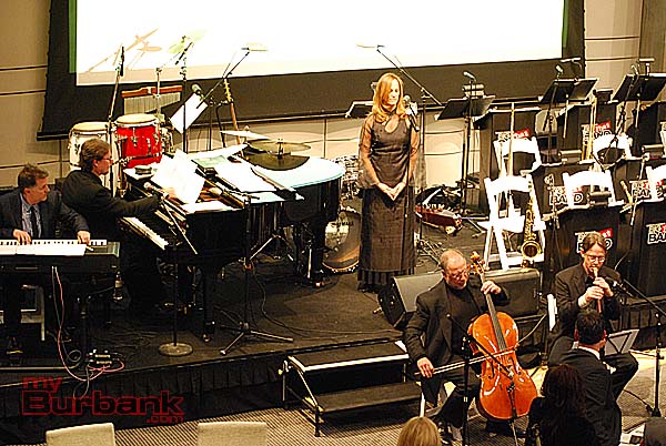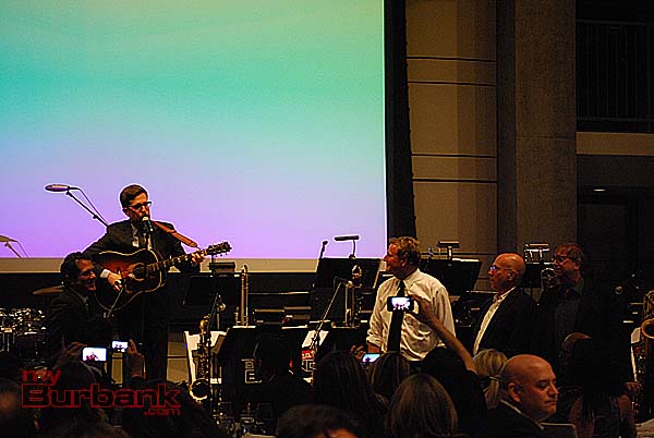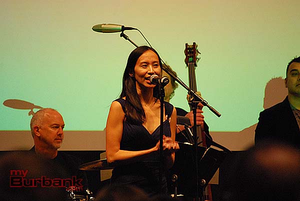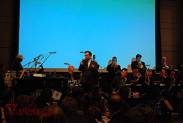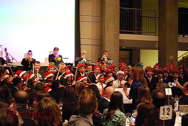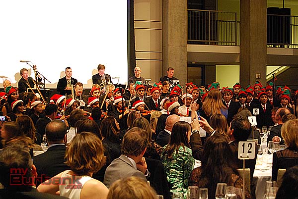 Mr. Helms entertained the guests throughout evening with song, comedy and some auctioneering. A group of four music industry executives bid $10,000 each for four signed banjos and a song made up on the spot and serenaded to them by Mr. Helms. Monica Mancini performed her father Henry’s classic “Moon River” with Gordon Goodwin’s Big Phat Band. Lisbeth Scott performed music from The Passion of the Christ with Chris Bleth, Steve Erdody and Mike Watts to a hushed audience.
