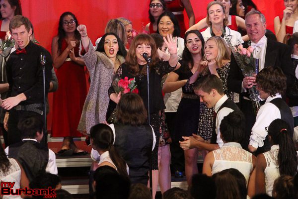 The party began in Tinseltown fashion. A search light signaled the way to the school courtyard that was decked out with a red carpet and photographers snapping pictures. A VIP reception, with food catered by California Pizza Kitchen, allowed guests time to bid on prizes and mingle.