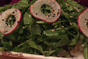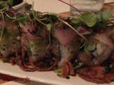 Perhaps the most exciting roll of the night was the Green Roll, made from Chilean Sea Bass tempura, avocado, soy paper and rice and topped with a green salad of arugula, green beans, edamame and asparagus. The peppery bite of arugula, the crunch of tempura and green beans and the smooth texture of avocado all combined for an exquisite taste.