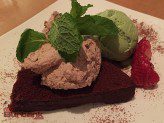 We ordered two desserts and enjoyed the Flourless Varlohna with Green Tea ice cream very much. However, the second dessert, a Banana Berry Flambe, was a disappointment. That dessert took over 30 minutes to come out of the kitchen, after we had finished the Varlohna and it looked like a bowl of mush. Not very appealing, but it tasted okay.