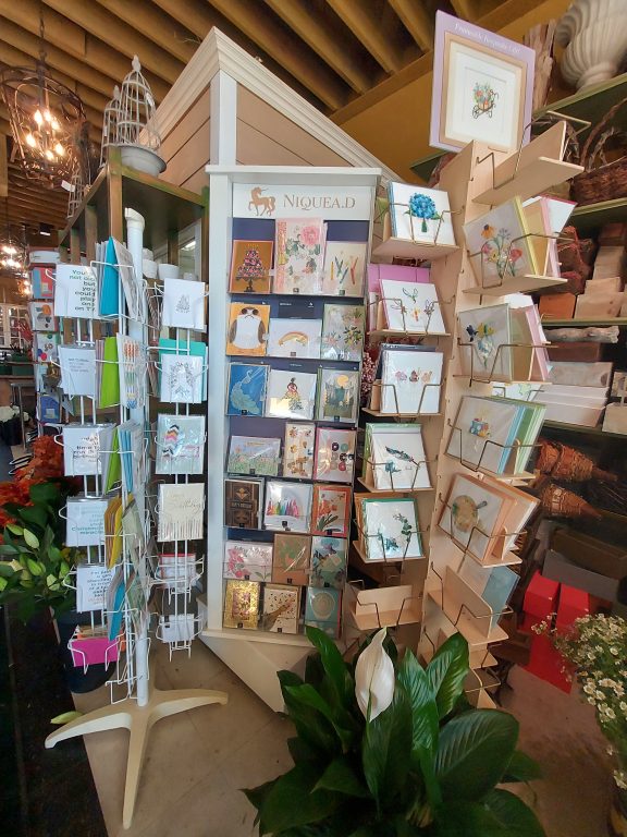 They turned the space into a combined invitation, gift, and floral accessory shop. When the world eventually moved to Evites and digital RSVPs, Kimberly pivoted again—phasing out invitations and expanding the gift shop.