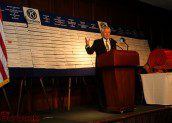 Larry Stamper provided the invocation using several Jeopardy-esque references. Johnny Holiday served as master of ceremonies. Voice-over actor Jimmy Weldon delivered a monologue titled “A Presentation of Old Glory” saluting the American flag followed by vocalist Charissa Wheeler singing “God Bless America”.