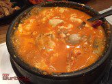 When the server brings the tofu soup, diners are warned to not touch the bowl – it is boiling hot and the stone bowl continues to hold the heat for several minutes. This is the time when one cracks open the raw egg into the soup, which is nicely cooked by the time the soup cools enough to eat.