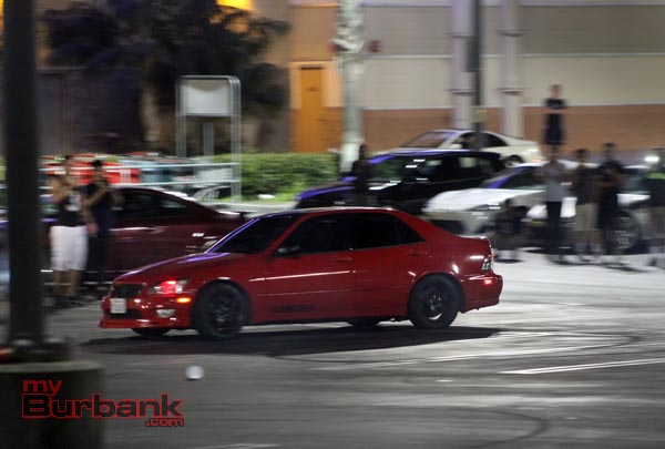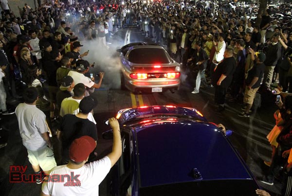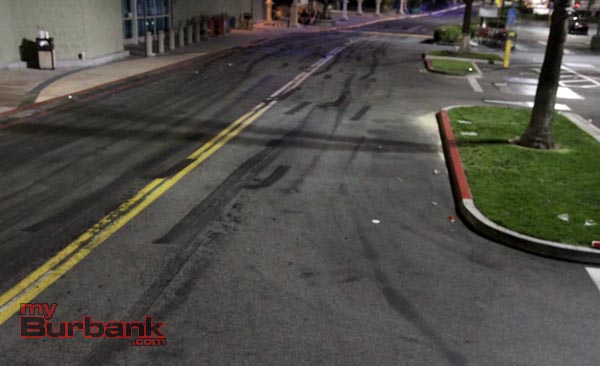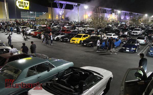 Burbank Police motor officers were present, monitoring the situation. The parking lot is private property and the officers patrolled the streets around the center bounded by Buena Vista and Victory Boulevard. The officers enforced traffic laws when they observed violations on the city streets.Krispy Kreme Nite-3