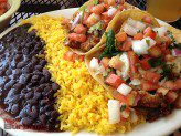 La Bamba’s take on the taco is a hearty one: two corn tortillas for each taco, filled to bursting with the meat of choice (pork, chicken, beef, fish or shrimp), and nestled next to a generous serving of rice and beans. Two people can easily share a three-taco plate.