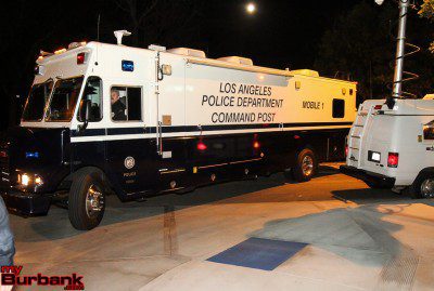Los Angeles Police started releaving Burbank Patrol Officers on the perimeter and had several additional Patrol, Detectives, and specialized equipment roll into the scene which will remain closed for most of the morning.
