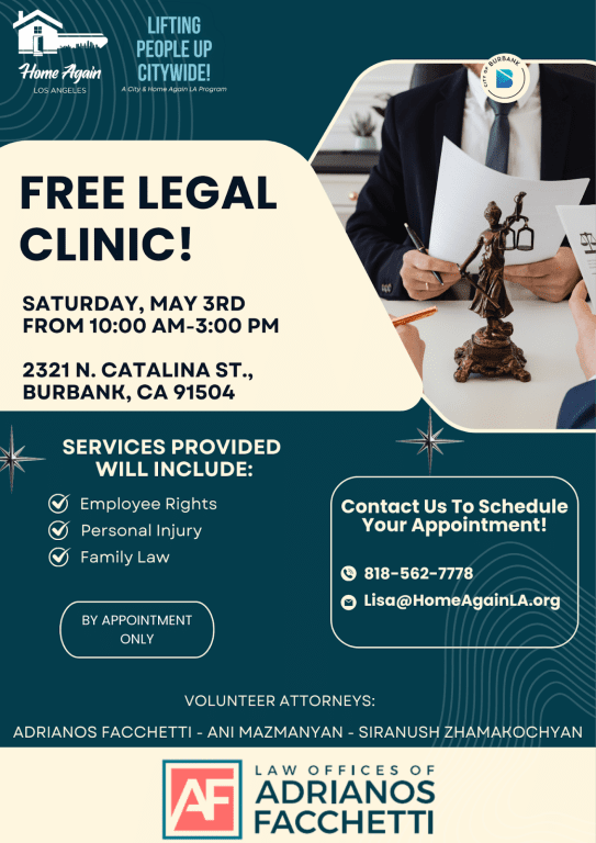 Our free legal clinic provided one-on-one guidance to residents needing help with employee rights, personal injury issues, and family law, many of whom rarely have access to private counsel. Partnering with Home Again LA turned the day into a true community effort to ensure that people get the information and support they deserve.