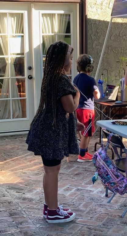 “We were fortunate to have access to some resources that gave us a good starting point; the group was able to pool together resources to provide homes with backyards so we had outdoor space for the kids, robust WiFi in our homes so everyone could be online at the same time, a few tents for shade and some tables to use as desks,” Oliver continued. “I believe we invested in three additional tables between the two houses for outside and chairs (total around $200), an additional tent ($90) and cleaning supplies for each house ($75).”