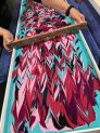 Mayu Silk Art uses a water marbeling technique to create unique fabrics for a variety of uses. The silk paint party on Sunday will demonstrate the technique. Schnaid was impressed by the company’s approach to wearable art and attended a class in Huntington Beach to learn more.