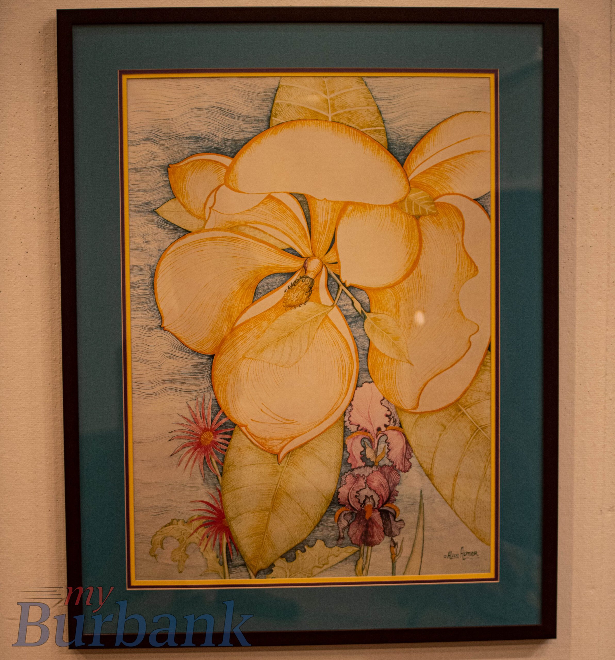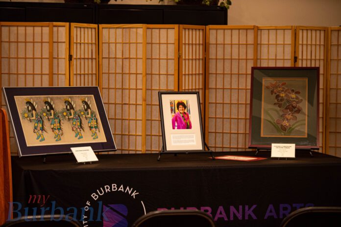 Burbank Cultural Arts Commission members Suzanne Weerts and Leah Harrison, Former Mayor of Burbank Marsha Ramos, Asmar’s step-granddaughter, Margie Williams, and Mayor Jess Talamantes gave speeches honoring Asmar during the event. Eric Conner of the Burbank Cultural Arts Commission was presented with a California State Senate Certificate of Recognition to acknowledge the Celebration of the Life and Artistry of Alice Asmar Exhibit. Burbank City Councilmember Sharon Springer was likewise in attendance and recalled enjoyable memories of becoming acquainted with Asmar.