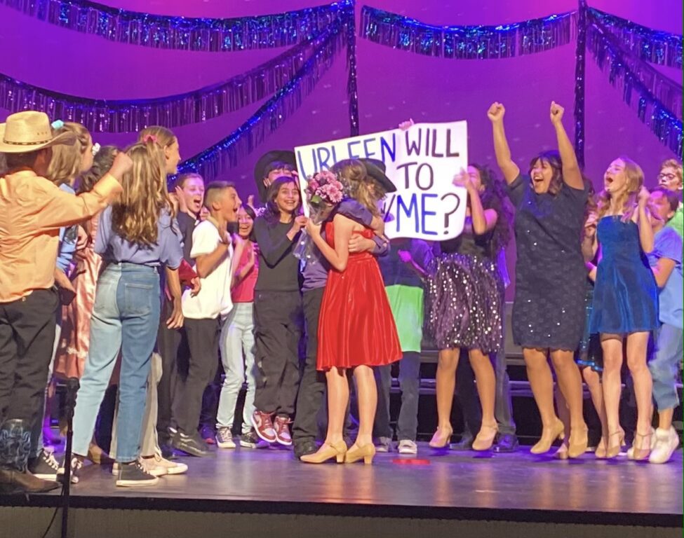 The three night production ended with a special surprise at Luther’s Footloose. 8th grader Jacob Worsham who played the role of Willard Hewitt, took to the stage after the show holding flowers and a giant sign reading “Urleen will you go to Semi with me?” The character Urleen was played by 8th grader Molly Hauser, and Worsham’s sweet semi-formal dance proposal was welcomed by Hauser with a hug and definite “yes!”