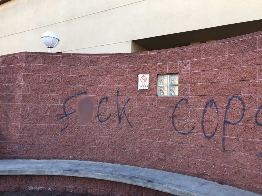Witnesses saw a man who was spray painting the side of the Burbank police building on Monday afternoon and alerting authorities.