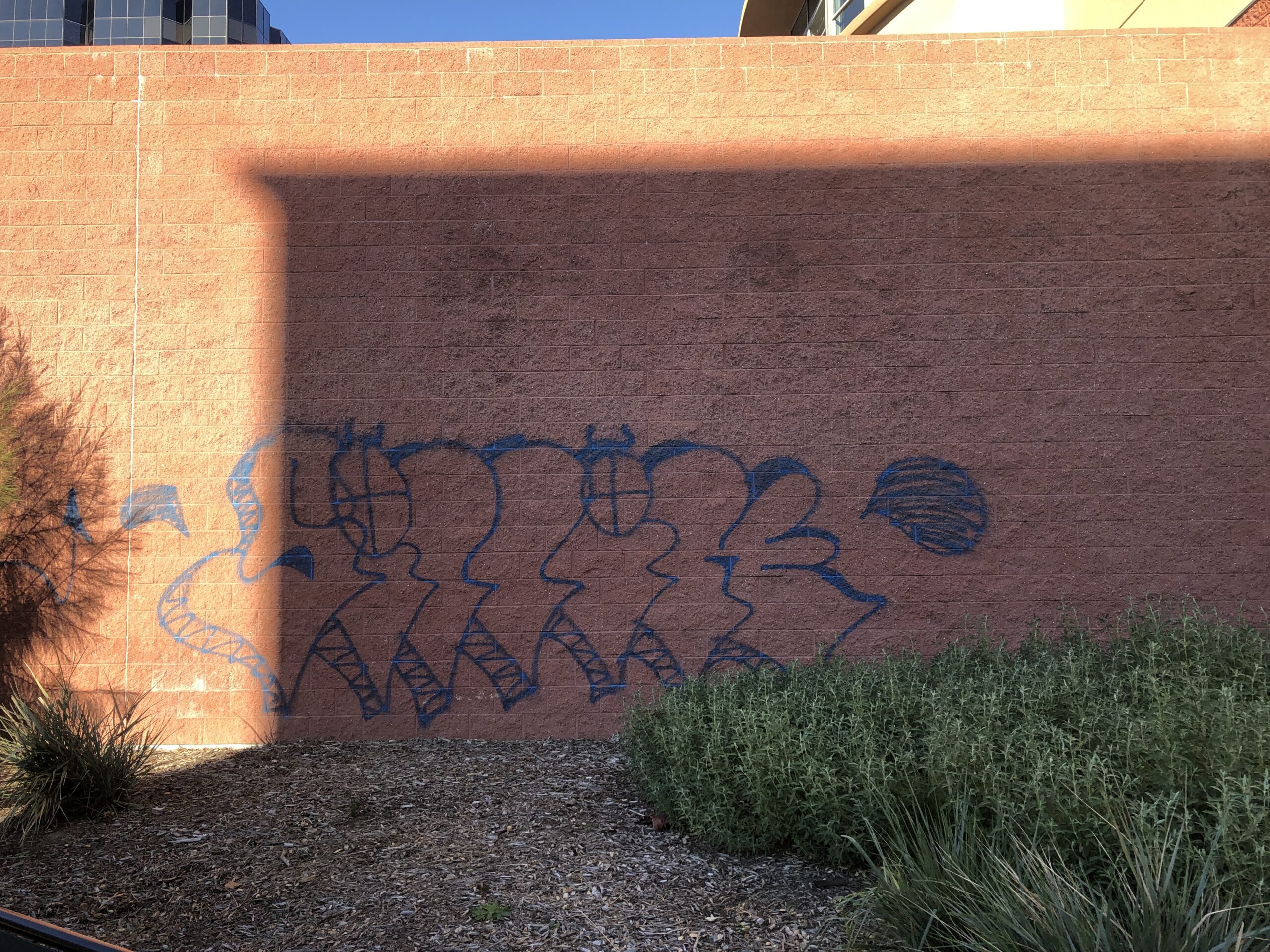 He will be booked for PC 594 which is defined as “Every person who maliciously commits any of the following acts with respect to any real or personal property not his or her own, in cases other than those specified by state law, is guilty of vandalism: (1) Defaces with graffiti or other inscribed material.”