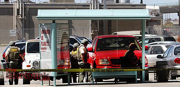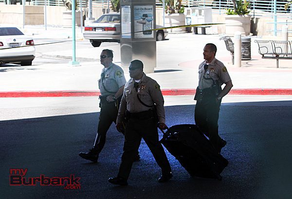 The Sheriff’s Bomb Squad, along with bomb-sniffing dogs rushed to the station from Sylmar. The three double-deck passenger cars were searched and no bomb or other suspicious packages were found. Because the suspect was seen in the parking lot of the Burbank Train Station, the parking lot and train platform were also searched.
