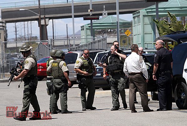 Twelve Burbank officers responded to the incident, along with the patrol captain, watch commander, two sergeants, and detectives. A command post was set up uner the Olive Ave. overpass, on the west side of the train tracks, near Flower St. The Burbank Fire Department also responded to the train station.