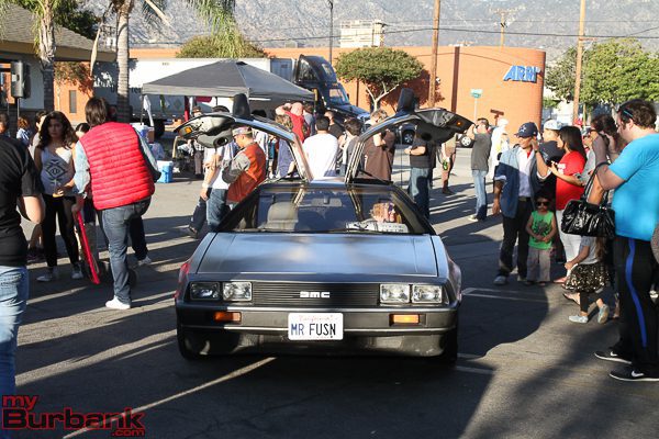 The crowd got to sit in a DeLorean and take pictures, as people were even wearing DeLoreans cars, the crowd of several hundred listen to music and shared memories of the movie of years ago.