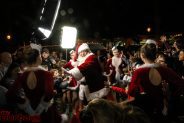 Mayor Will Rogers brought candy canes for the crowd which numbered in the hundreds. Special guests included Mickey Mouse and Pluto, the Red Chair Dancers, and the Muses from John Burroughs High School.
