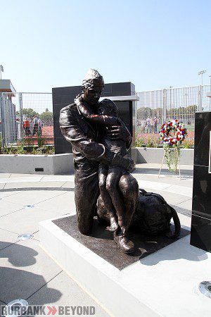 A flyover began the day, followed by a presentation of the colors by the United States Marines from the Los Angeles Recruiting Station of Eagle Rock. It concluded with an art unveiling of the piece titled “Home” by Sheila Cavalluzzi depicting a soldier home from war.