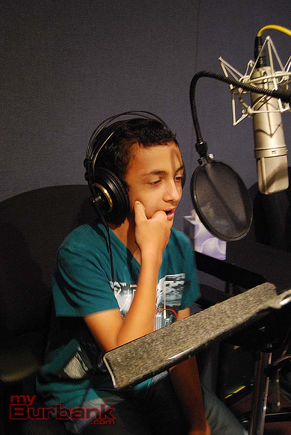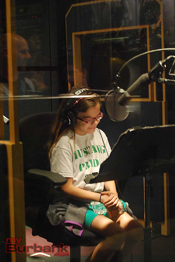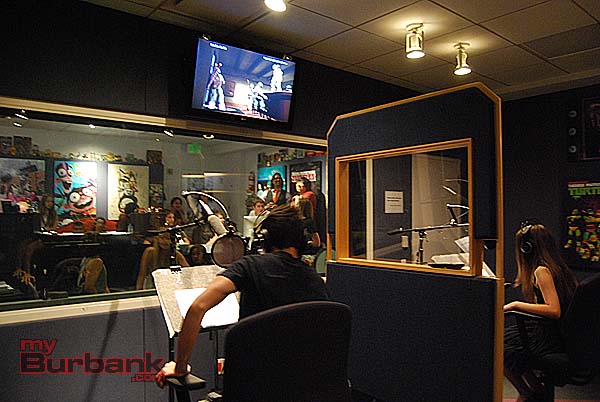 Muir students say their lines in the vocal booth at Nickelodeon. (Photo By Lisa Paredes)
