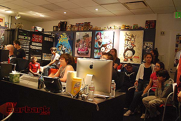 Students watch the process in the recording studio at Nickelodeon. (Photo By Lisa Paredes)