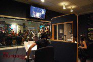 Students were able to sit behind the recording desk and watch Corey run playback and record the voice overs.