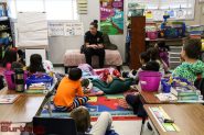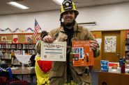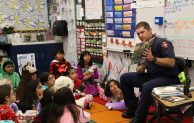 Burbank Fire Captain Dave Burke reads to students at Miller Elementary school. (Photo by Ross A Benson)