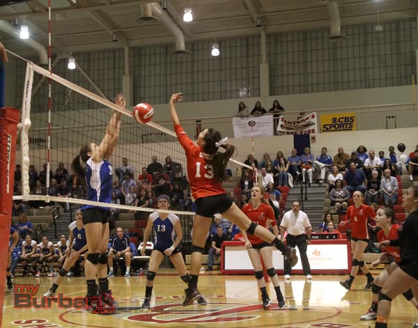 Burbank 3 Burroughs 0 (25-15, 25-20, 25-21). The Bulldogs gain a point in the “myBurbank CUP” standings. The two teams split during the regular season. Burbank (15-6, 11-3 in league) and Burroughs (14-7, 11-3) tied for second place in the Pacific League and have qualified for the CIF Playoffs.