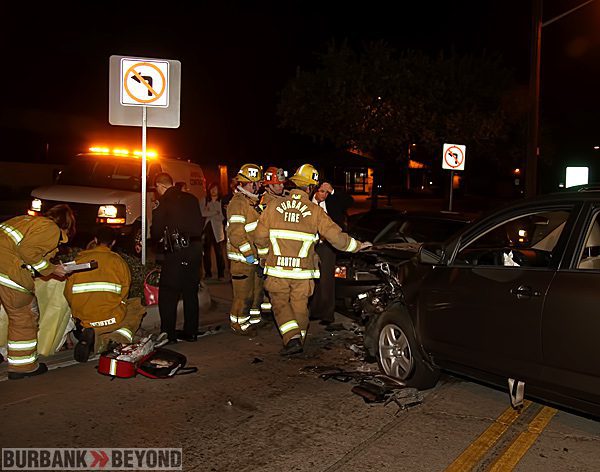 Burbank Police, with the aid of Animal Shelter personal, stopped traffic while Burbank Paramedics could treat the injured. Paramedics needed two rescue ambulances to transport the victims to Saint Joseph Medical Center with moderate injuries.
